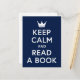 Keep Calm and Read a Book postcard featuring a minimalist crown. This versatile postcard has an editable background colour (change it to whatever you like) which you can access by clicking the "customize" button.