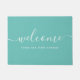 Doormat featuring the word "Welcome" in modern calligraphy script and that you can personalize with your property name or street address all against an editable background colour (click customize to change) that's perfect for your own home or your rental property, hotel, bed and breakfast, etc.