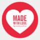 Editable Colour Made with Love White Heart Classic Round Sticker
