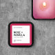 This modern minimalist product label has a white square centre and an editable background colour (click customize to change) that you can change from pink to that of your choosing. It makes a perfect label for candles, beauty products, etc.