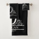 Elegant split monogram letter D Bath towel set set on a black background. Background colour can easily be changed by clicking on "Personalize this template" to "Click to customize further" then on the left hand side under layers you will find the background colour link. Click on it and change your colour!