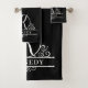 Elegant split monogram letter K Bath towel set set on a black background. Background colour can easily be changed by clicking on "Personalize this template" to "Click to customize further" then on the left hand side under layers you will find the background colour link. Click on it and change your colour!