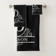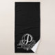 Elegant split monogram letter P Bath towel set set on a black background. Background colour can easily be changed by clicking on "Personalize this template" to "Click to customize further" then on the left hand side under layers you will find the background colour link. Click on it and change your colour!