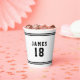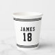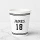 Stylish varsity style paper cups featuring your name number with fully editable colours. Font colours can be change by clicking on customize, select the texts in the "Auto Warping, Front" and "Auto Warping, Back" layers and change its colour . Stripes colour can be changed by clicking on customize and changing the colour of "line" in the "Auto Warping, Wrap" layer and background colour can also be changed on the same layer. They make the perfect paper cups for birthdays, graduation or celebrating your athlete's achievement.