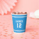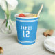 Stylish varsity style paper cups featuring your name number with fully editable colours. Font colours can be change by clicking on customize, select the texts in the "Auto Warping, Front" and "Auto Warping, Back" layers and change its colour . Stripes colour can be changed by clicking on customize and changing the colour of "line" in the "Auto Warping, Wrap" layer and background colour can also be changed on the same layer. They make the perfect paper cups for birthdays, graduation or celebrating your athlete's achievement.