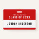 This varsity style name badge is ideal for class reunions and has an editable background colour (click customize to change) that you can change to match your school colours.