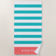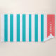 Nautical style beach towel featuring a white stripes pattern with an editable background colour, click the customize button for access. To change the turquoise colour, select background colour and change its colour. To change the coral colour, select rectangle layer and change its fill colour.