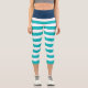 Nautical style capri-length leggings featuring a white stripes pattern with an editable background colour, click the customize button to change the background colour of the front and waist layer.