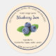 This editable label features a light background with a blue ring. In the centre is an illustration of blueberries. At the top is the contact information for the company/ business, the company name and the product name. Below, is the ingredient list and the website information. All text is editable so go ahead and change the information as well as the font size, colour and style. You can also change the background and ring colours.