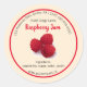 This editable label features a light background with a red ring. In the centre is an illustration of raspberries. At the top is the contact information for the company/ business, the company name and the product name. Below, is the ingredient list and the website information. All text is editable so go ahead and change the information as well as the font size, colour and style. You can also change the background and ring colours.