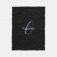 Editable Cursive Script Monogram Black Blue White Fleece Blanket