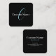 Editable Cursive Script Monogram Black Blue White Square Business Card