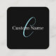 Editable Cursive Script Monogram Black Blue White Square Business Card