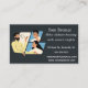 This editable business card features an illustration of a distance learning tutor and his students to the left and the business details to the right. This information is editable so go ahead and change the details as well as the font style, size and colour. On the back is a field for additional details which is editable, as well.