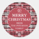 Editable flannel plaid pattern dark red Christmas Classic Round Sticker