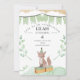 This sweet design features a delightful watercolor fox, sitting on a present, ready to celebrate. The whimsical green bunting and soft leafy branches create a playful, natural feel, perfect for a child's birthday. The simple and clear layout makes it easy for you to customize all the party details and invite your loved ones to celebrate your little one's special day.