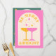 Christmas party menu card in pink, yellow and green. A colourful and chic holiday design. Easily edit and personalize the name, photo and wishes of the Christmas card. The design is bright and pretty, a great way to bring a festive mood for the holiday season for not too traditional people and families.