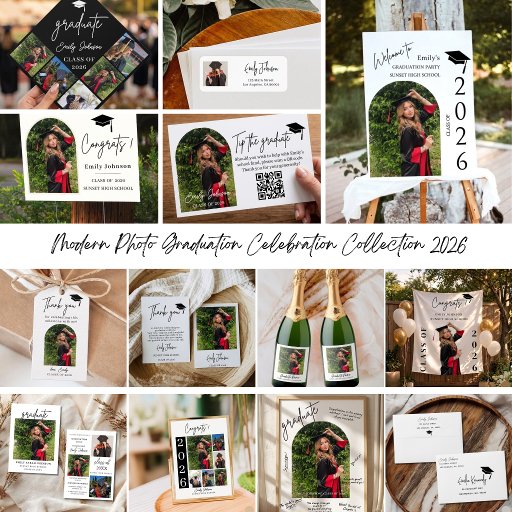 Celebrate your special milestone with this elegant and modern graduation party invitation featuring a stylish photo layout and clean minimalist design. Perfect for high school or college graduates, this chic invitation allows you to showcase multiple photos while keeping a sophisticated and timeless aesthetic. Ideal for Class of 2026 celebrations, this customizable invite includes all essential event details and creates a memorable first impression for your guests. Designed to stand out in search results, this trending graduation invitation combines simplicity, elegance, and personal touch—perfect for unforgettable graduation parties.