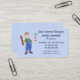 This editable business card features an illustration of a handyman on the left with the information about the company on the right. The text on the front is editable so go ahead and change the details as well as the font style, colour and size. On the back, there is a field for additional details.This is editable as well. The background colours on the front and back can be changed, too. This editable business card can be used for handymen, construction companies, carpentry, renovations etc.