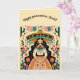 This beautiful card features a folk art illustration of a Mexican girl with flowers and cacti and an editable message above it. On the inside is an editable message. You can use this as a quinceañera card, birthday card or as a card for any occasion. You can change the messages or delete them to create a blank card. You can also change the background colours on the inside and back. Art credit: Lynda McDaniel-Smith.