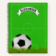 Personalized soccer notebook featuring a bright green football pitch, a soccer ball, and your kids name.