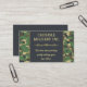 This business card features the business name and message against a dark background set against a camouflage background. On the back is a field for contact and other information. The text on both sides is editable so go ahead and change the words as well as the font size, style and colours. The background colours on both sides can be changed, too. This business card can be used for any military purpose.