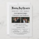 This regal, minimalist, easily personalizable newspaper wedding invitation will enthral your guests and provide the important wedding day news they need. It's a unique wedding invitation that mimics vintage newspapers with ornate, retro typography in the masthead. Under the name of the newspaper, "Wedding Day Chronicle", are important details of the wedding date, time and location. The front page story announces, "YOU'RE INVITED!" in all caps, with two photographs of the bride and groom and even more details about your wedding ceremony. The editable prompts let you keep the information being communicated as is, or put them in your own words. The back side of the invitation provides one QR code with room and instructions to add more if needed. Almost the entire invitation is customizable. Congratulations from Home Together!