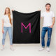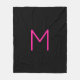 Editable Modern Pink & Black Monogram Fleece Blanket