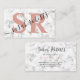 Editable monogram name marble rosegold business card