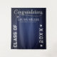 Celebrate your graduate with this elegant Custom Graduation Backdrop in navy blue and silver. Designed as a fun photo prop backdrop, it features a bold Congratulations message and personalized details like the graduate’s name and class year. Perfect for capturing unforgettable memories on that special day!