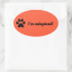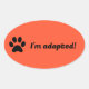 Editable Pet Paw Print I'm Adopted Oval Sticker
