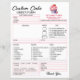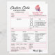 Streamline your bakery orders with this editable pink custom cake order form template! Designed for bakers, cake decorators, and dessert shops, this professional form makes it easy to record every detail — from flavors and fillings to delivery and payment options.