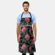 Elegant floral pattern featuring blooming pink roses with deep green leaves on a black background. Perfect for luxury fabric, and romantic floral Custom Apron.