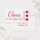 Want to offer your guests a way to enjoy several alcoholic beverages during your reception or party without being committed to an open bar? These 3 punch drink tickets could be ideal for you! In a pretty cherry red script font, the front message reads "Cheers from the happy couple". The text is editable, should you wish a different message to be printed on the front. Rotated, to the right and placed between slim red lines are the words "Redeem at the Bar"; this text is also editable. Three numbered circles were added to the right so your guests can have their cards punched at the bar as they're served up to three complementary drinks. The other side has template fields set up for your names and date. A sweet alternative to the open bar. Designed by Melody Watson for Paper Muserie.