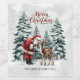 Dress up your holiday wine bottles with this charming editable Santa Claus label, featuring a watercolor illustration of Santa and his reindeer surrounded by snowy pine trees.