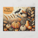 Editable Scarecrow Crow and Pumpkins Thanksgiving Postcard