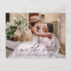 Wedding Save the Date Cards that have a photo on the front and back. The Save the Date cards contain a modern hand lettered cursive script typography that are elegant, simple and modern to use after you minimalist simple wedding day celebration.