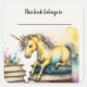 Editable Unicorn and Books Bookplate Sticker