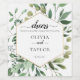 Watercolor Green Leaves Foliage Wedding Wine Label. Design features a modern style text layout. To make advanced changes, please select "Click to customize further" option under Personalize this template.