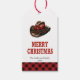 Saddle up your holiday spirit with this Western Christmas gift tag, where rustic charm meets festive cheer. Featuring classic red and green tones, cowboy boots, horseshoes, wagon wheels, and Wild West typography, this tag perfectly captures a cozy country Christmas vibe. Designed in a farmhouse-ranch style with touches of old-fashioned charm, it’s ideal for cowboys, ranchers, and lovers of the open prairie. Personalize it easily with your custom name or family message for a one-of-a-kind holiday accent. Whether tied to gifts, stockings, or party favors, this editable Yuletide Yeehaw tag adds warm, rustic flair to every present under the tree.