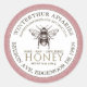 This white and rose-coloured kraft-bordered label has editable fields to comply with the requirements listed by the National Honey Board: the word honey, your business name, personal name, address, and net weight of honey in grams and ounces must be included if you sell your honey. Includes vintage bee illustration and dotted border. HONEY is written in a chiseled gold text. Common honey net weight conversions: 8oz (227g), 12oz (340g), 16oz (454g), 32oz (907g), 5lb (2.27kg).