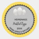 This editable yellow polka dot Pickled Eggs Label sticker features a scalloped-edged disc with the product information and an illustration of eggs. It has an yellow polka dot background. The text is editable so go ahead and change the details as well as the font style, size and colour. This can be used for preserves, gifts, seals, wedding favours, bookplates etc. Art credit: RedPepper.