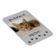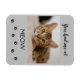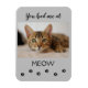 This magnet features a picture of a cat. Above it, it says, "You had me at" and below it, it says, "Meow". The text is editable so you can keep it as is or change it to whatever you'd like. The font size, style and colour can be changed as well. The picture of the cat is editable so replace it with your own pet's picture. The background colour can be changed as well so go ahead and make it your own!