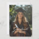The front of the invitation features an allover photo template, allowing you to personalize it with a cherished image from your academic journey. Whether it's a formal graduation portrait or a candid shot with friends, this feature transforms the invitation into a keepsake that captures your unique story. The modern design elements are thoughtfully arranged to create a cohesive and visually appealing composition. The sleek lines and clean layout evoke the elegance of a glossy magazine spread, making your invitation a standout piece.