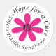 Ehlers-Danlos Syndrome Hope for a Cure Round Sticker featuring a pink flower with a zebra striped flower centre.