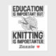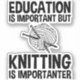 Education Is Important But Knitting Is Importanter. This funny knitting design would be a great knitting gift idea for the knitter in your life. Perfect for anyone who loves to knit and loves yarn! If knitting is your hobby, you're a yarn lover and you love crafting with knitting needles and balls of yarn, then this knitter accessory is for you!