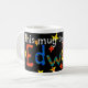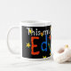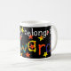 Classic white mug with a colourful inscription, 'This mug belongs to Edward' made from handpainted paper collage. (dishwasher and mocrowave safe, as are all our mugs).