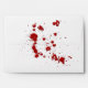 Silly and humourous faux fake deep red blood splatters and drops on crisp white background. Makes a funny gag gift, part of a halloween costume, or just to make people look twice.