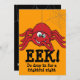 Invitation de partie de Halloween d'amusement. Comporter une araignée plutôt grande. L'extérieur de l'invitation lit l'EEK ! Laissez tomber dedans pendant une nuit terrible. Partie intérieure de Spooktacular Halloween. Avec la personnalisation de vos noms, détails, adresse et RSVP de partie. Illustration et conception uniquement conçues d'araignée d'amusement de Sarah Trett.