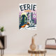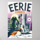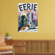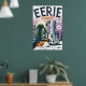 This design is based on the cover for the First issue of the supernatural/horror one-shot comic; it was followed by a regular series from the same publisher: Eerie (Avon, 1951 series). The cover features a raven-haired woman in a red dress, her feet and hands bound with golden ropes, while a ghoulish man in a green robe leers in the background. The man's bald head is framed by a giant yellow moon, glowing in a purple haze. Barefoot, he moves toward her, a dagger in one hand.